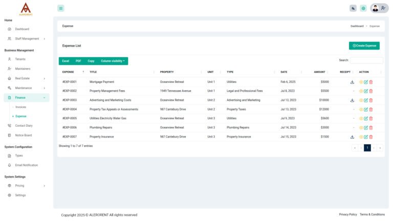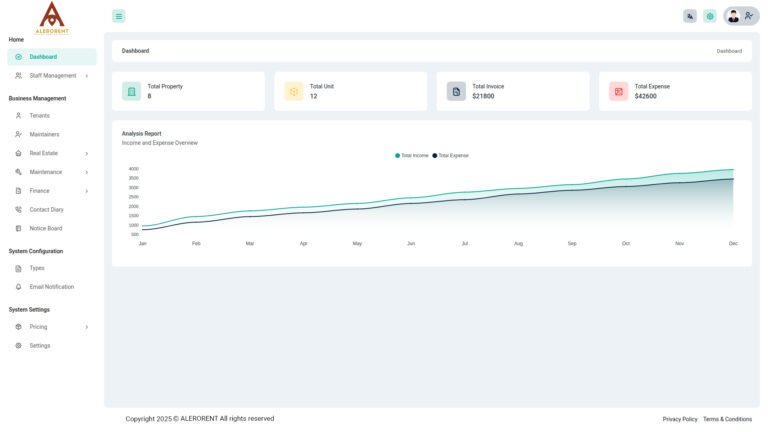 Streamline commercial property management with ALERORENT: Robust lease handling, Efficient maintenance, and Detailed financial tracking in one platform.